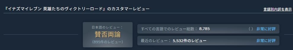 Steam「すべての言語でのレビュー、非常に好評。日本語のレビュー、賛否両論」