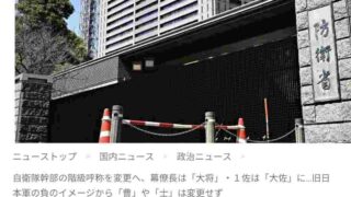 エッヂ自衛隊幹部の呼称変更へ 幕僚長は「大将」、一佐は「大佐」などへ変更、旧軍のイメージから二等兵には変更せず
