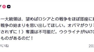 嫌儲トランプ「ゼレンスキーはウクライナがNATO入りせず占領地のロシア支配を認めれば即座に戦争を終わらすことができる」
