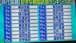 なんG【画像】最新の「好きな戦国武将ランキング」、北条も斎藤も島津も大友も長宗我部もランキング圏外w