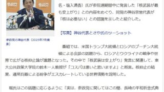 嫌儲【さや悲報】参政党神谷「核兵器は最終的には必要ないと思います、あれは選挙期間中のさや候補の1つの発言」