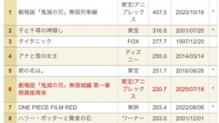 エッヂ鬼滅の刃 無限城編、興行収入252億で歴代単独5位に浮上するwww