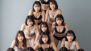 エッヂ【画像】巨乳女さん、下着姿でえちえち六段ピラミッドを作ってしまうwww