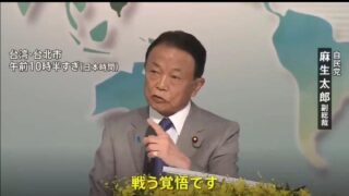 なんG【画像】麻生太郎「日本は台湾のために中国と戦争する”覚悟”がある」