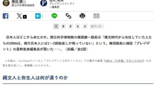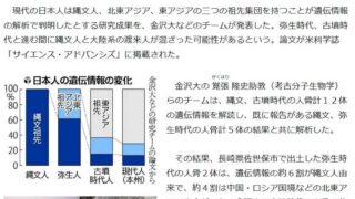 弥生人「縄文人60%、北東アジア40%です」今の日本人「縄文人10%、北東アジア20%、東アジア70%です」