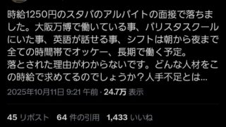 エッヂ英語も話せるハイスペ女子さん、時給1250円のスタバのアルバイトに落ちてしまう