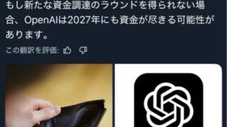 【終戦】OpenAI、なんか普通に資金枯渇へ…AI競争はGrokとGeminiの2強へ