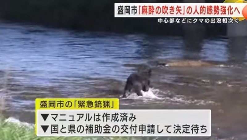 盛岡市の内舘茂市長は4日の定例記者会見で、市街地に出没するクマ対策として、麻酔の吹き矢で捕獲できる人を増やしていく考えを示した。