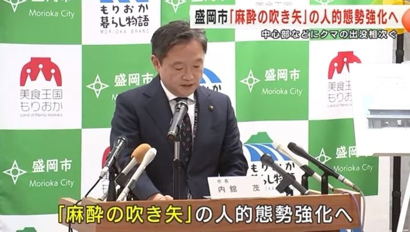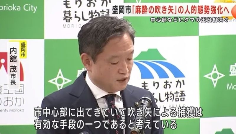 岩手県盛岡市の中心部などにクマが相次いで出没していることを受けて内舘茂市長は、麻酔の吹き矢を使った捕獲について「人的な体制の強化を国や県に要望している」ことを明らかにしました。 内舘茂市長 「市中