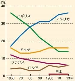 全体工業生産: 化学工業(染料、医薬品)や電気・機械分野で世界をリード。1913年の世界製造業シェアでは、ドイツはイギリスを抜き、ヨーロッパ最大。