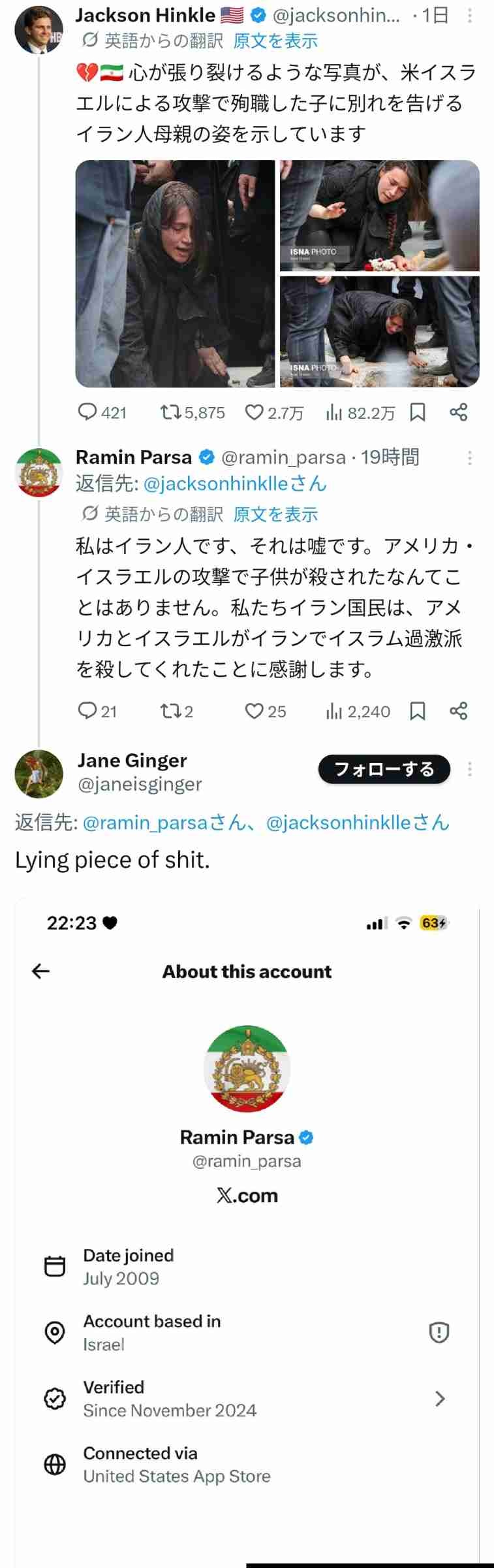 Xでアメリカとイスラエルの侵略を歓迎する書き込みをしていた自称イラン人、IPがイスラエル