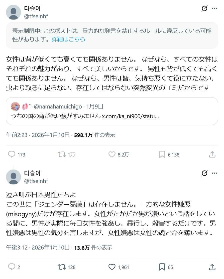 韓国フェミ超絶ブチギレ&それを日本女が引用RTで絶賛してまんバズ連発