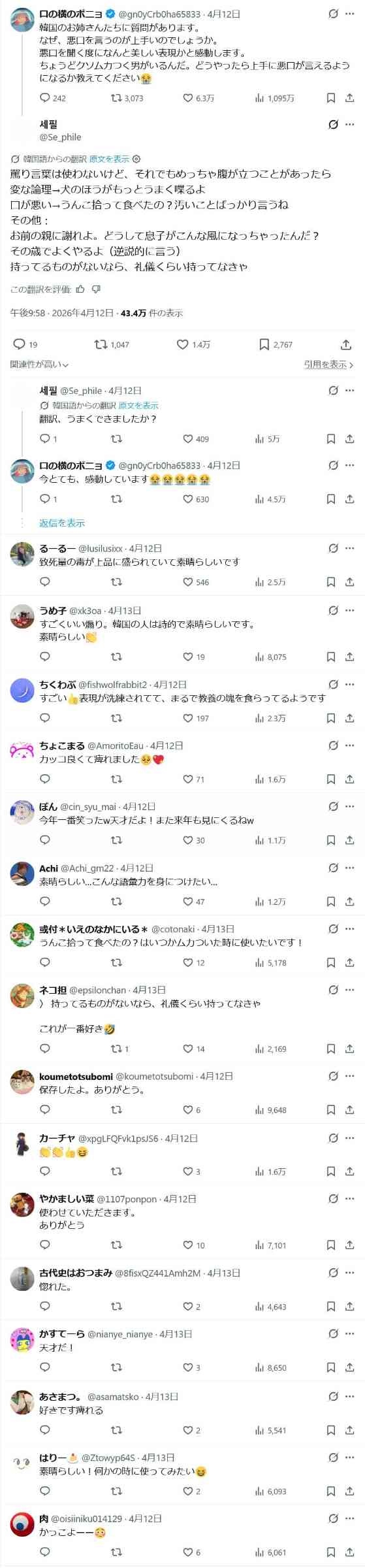 韓国女が言えば何でも持ち上げるっていう結論ありきで最初から決まってるリアクションって感じ - 29 : 2026/04/15(水) 06:09:56.921 ID:DvwZJfycW