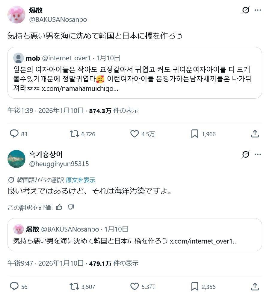 - 日韓の男を殺して橋にしましょうみたいなやつもバズってた